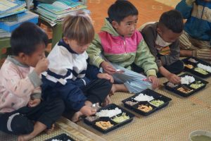 Thầy giáo chủ nhiệm Lò Văn Khương chia sẻ: hàng ngày các em nhỏ phải mang theo cạp lồng cơm trong đó bạn thì măng ớt , mèn mén , ít rau khô là thức ăn hằng ngày của học sinh tại trường. Chỉ vào những dịp lễ Tết, may ra các con mới biết tới miếng cơm có thịt. Những bữa cơm có thịt , thậm chí những bữa cơm trộn với mì gói giống như một giấc mơ với những đứa trẻ vùng cao như Bản Làng Chếu. Nó cũng chính là động lực để lôi kéo các con đến trường.